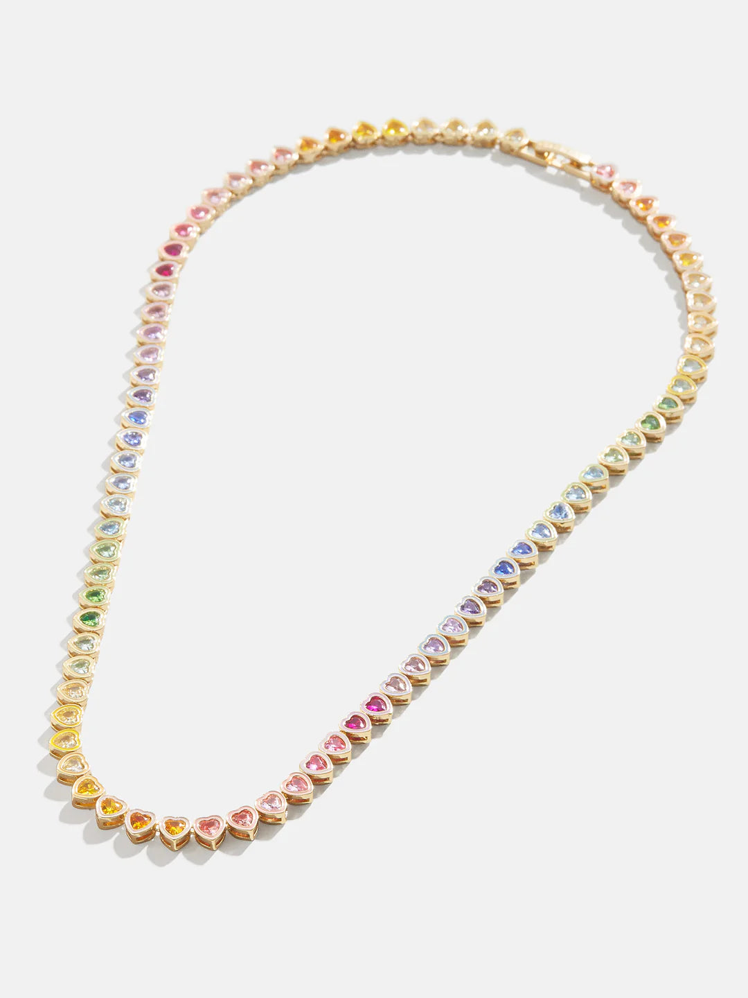 Baublebar's Kali collection just got another style that's sure to become one of your everyday favorites. The Kali Necklace features an eternity necklace band fitted with an ombre of heart-shaped rainbow crystals. It's the perfect pop of color to add to your collection.